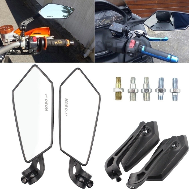 Spion variasi motor Sepasang biru dan putih anti silau dapat diputar 360 derajat Cermin HD universal Honda Yamaha Suzuki