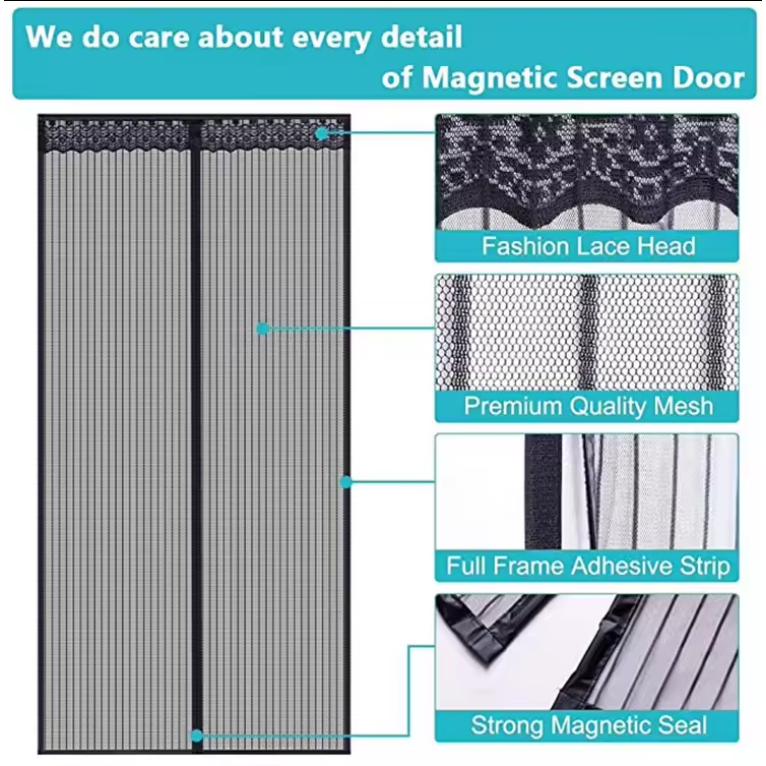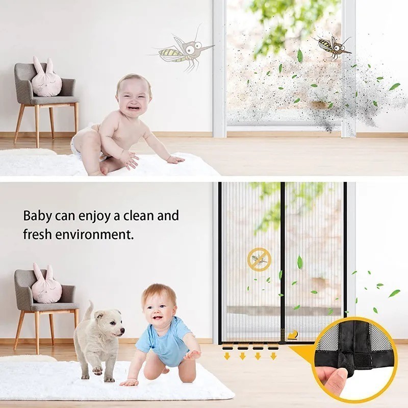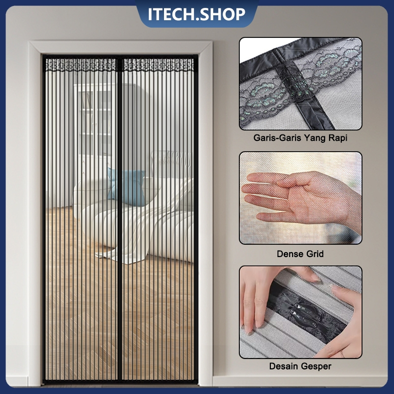 Tirai Pintu Magnet 100x210cm Premium Mesh Tidak Mudah Terbakar Tirai Pintu Kamar Tirai Magnet Jendela Anti