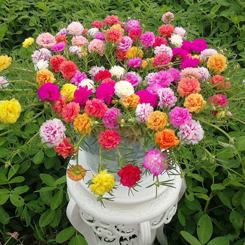 Kadar kecambah 90% isi 100 Pcs Benih Bunga Moss Rose seeds Warna Warni PORTULACA GRANDIFLORA Benih Bunga Sutra ay Hias B
