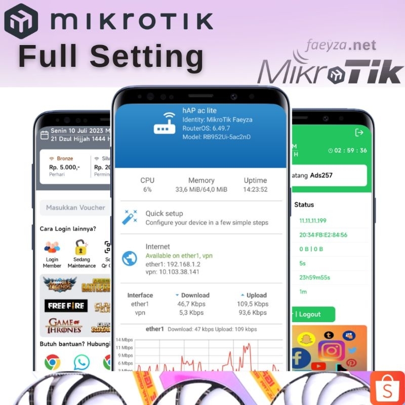 Router MikroTik RB951Ui 2HnD Full Setting Hotspot PPPoE Server Load balance Rt Rw Net
