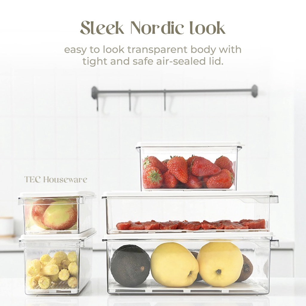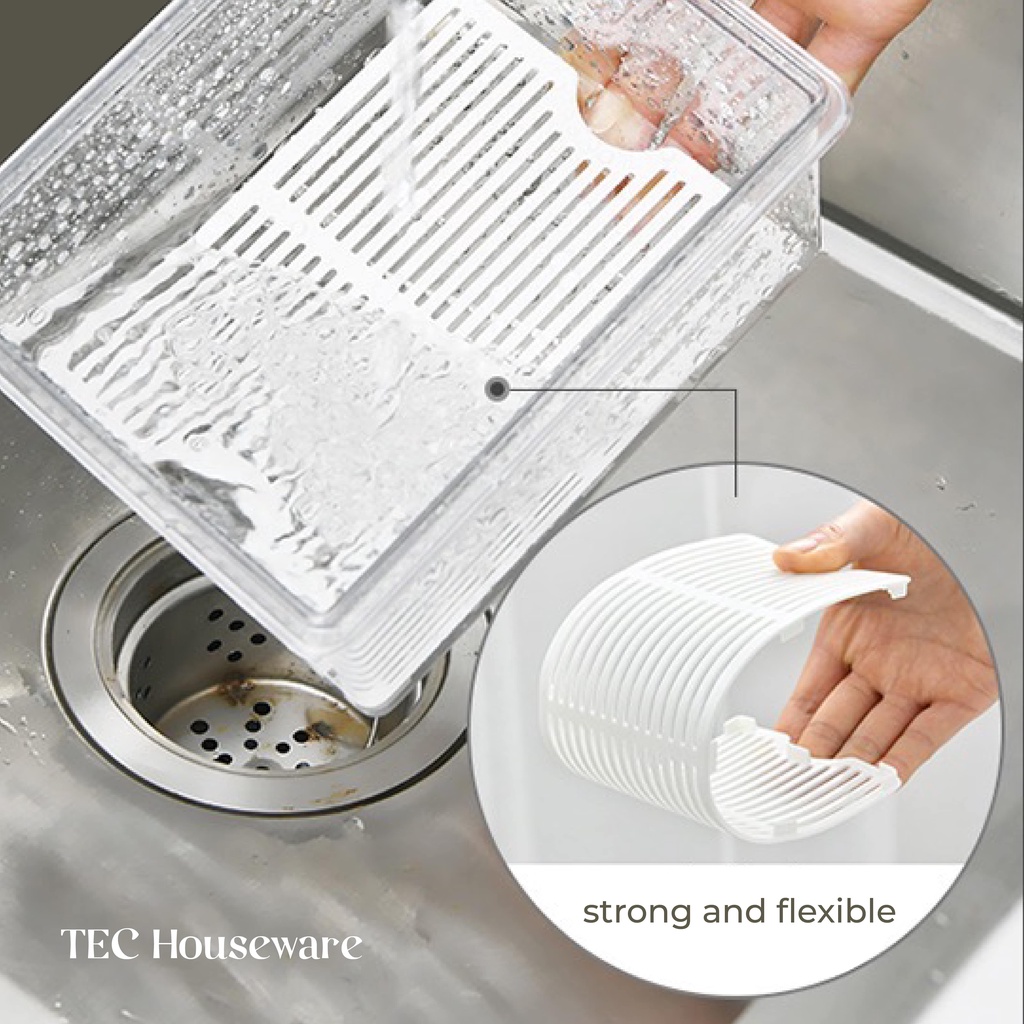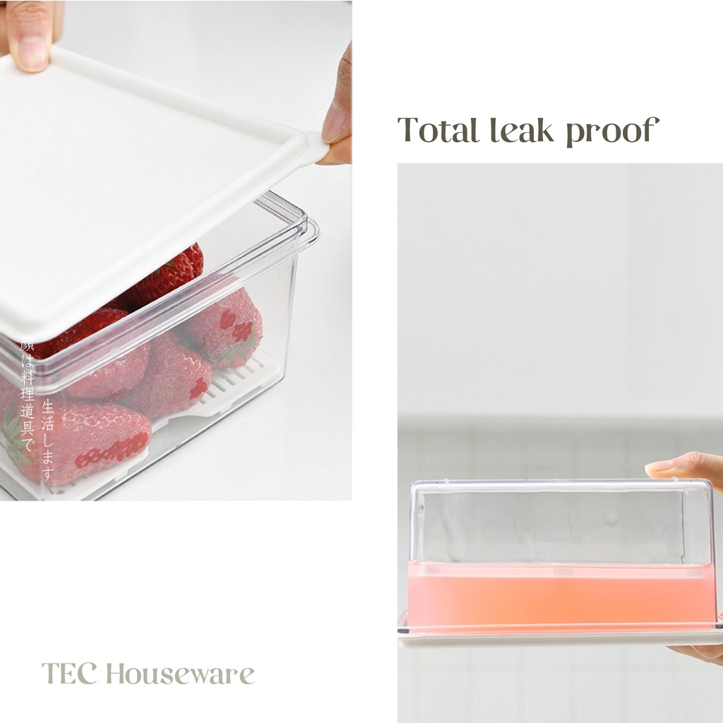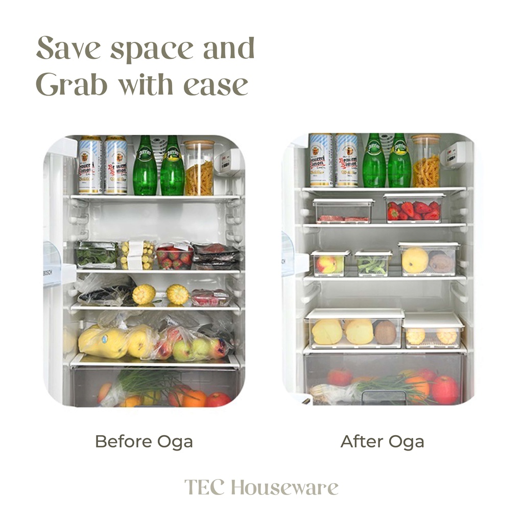 Wadah Penyimpanan Tec Oga Kontainer Kulkas Daging Sayur Buah Putih Transparan Serbaguna