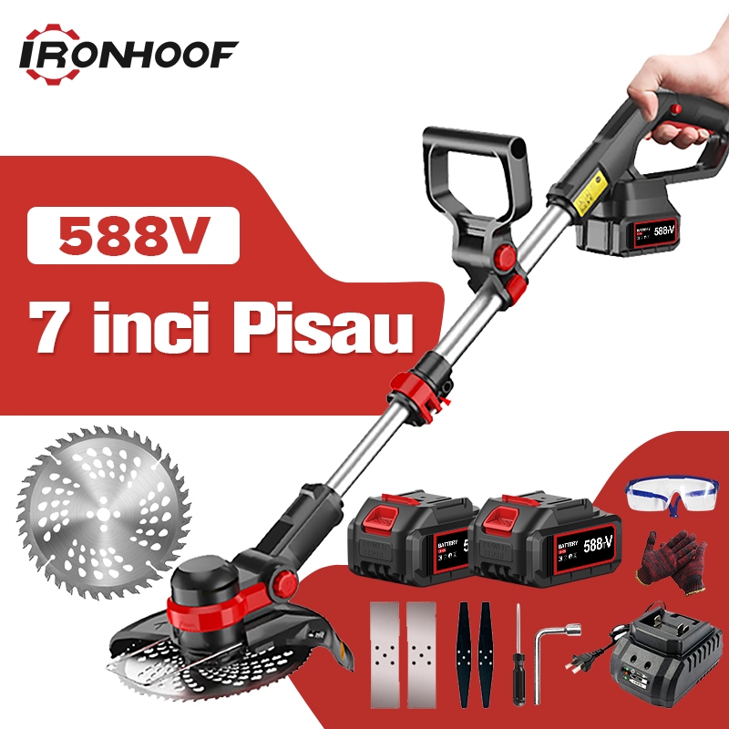 IRONHOOF 588V Mesin Potong Rumput Pemotong Rumput Listrik Pemangkas Rumput dengan Baterai Li-ion