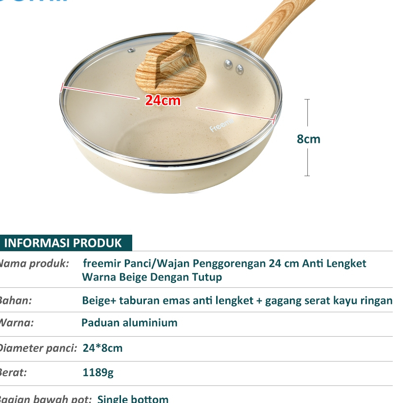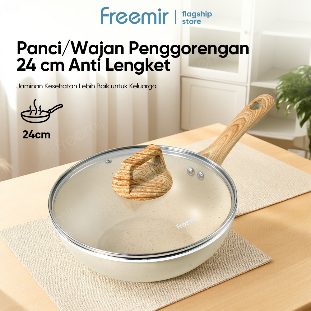 Wajan Freemir Wokpan 24Cm Anti Lengket Beige Cepat Panas Penggorengan Praktis