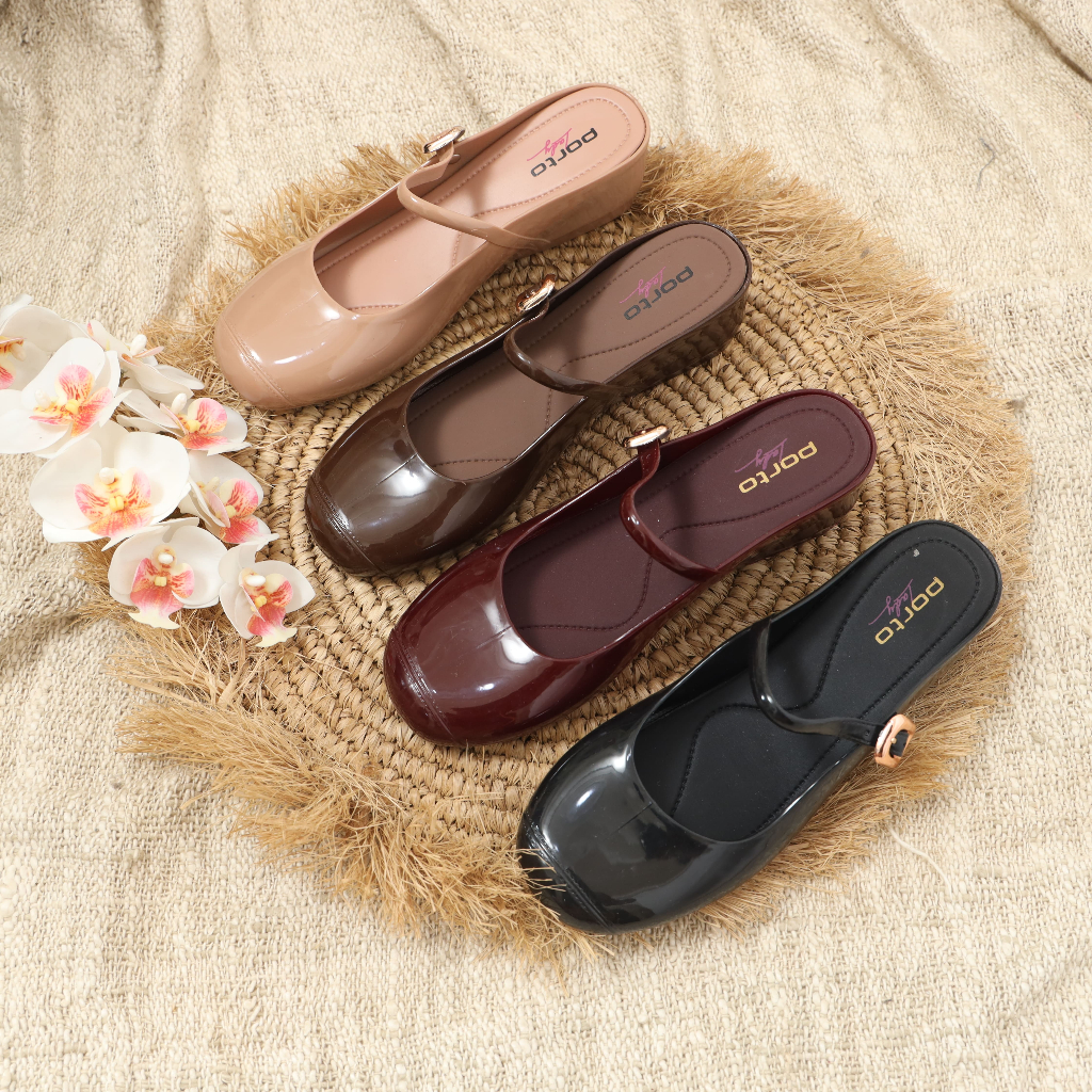 Sepatu Wedges Wanita Terbaru Kondangan Porto -Mules Wanita Jennie Casual Tali Nyaman Anti Air Sepatu Kantor Kerja Kampus