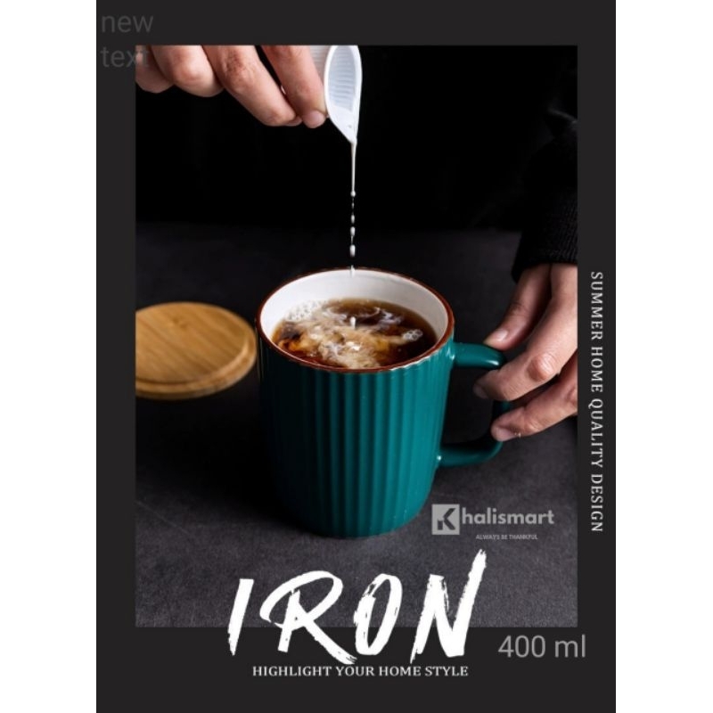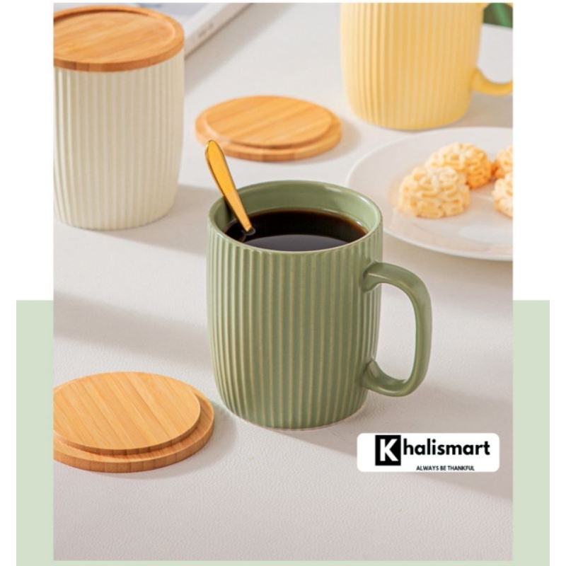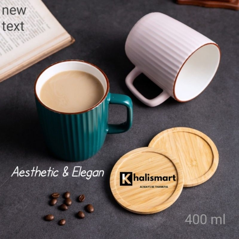 Mug Gelas Kopi Teh Susu Keramik Dengan Tutup 400Ml Aesthetic Cup Mug
