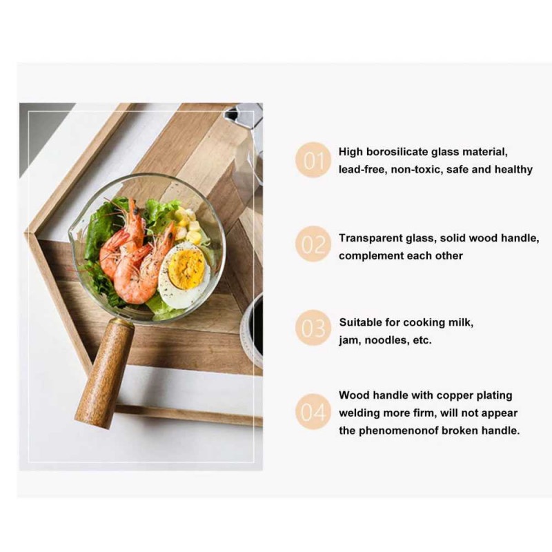 Panci Masak Kaca Kc0407 Glass Cooking Pot Wooden Handle Tahan Panas Transparan