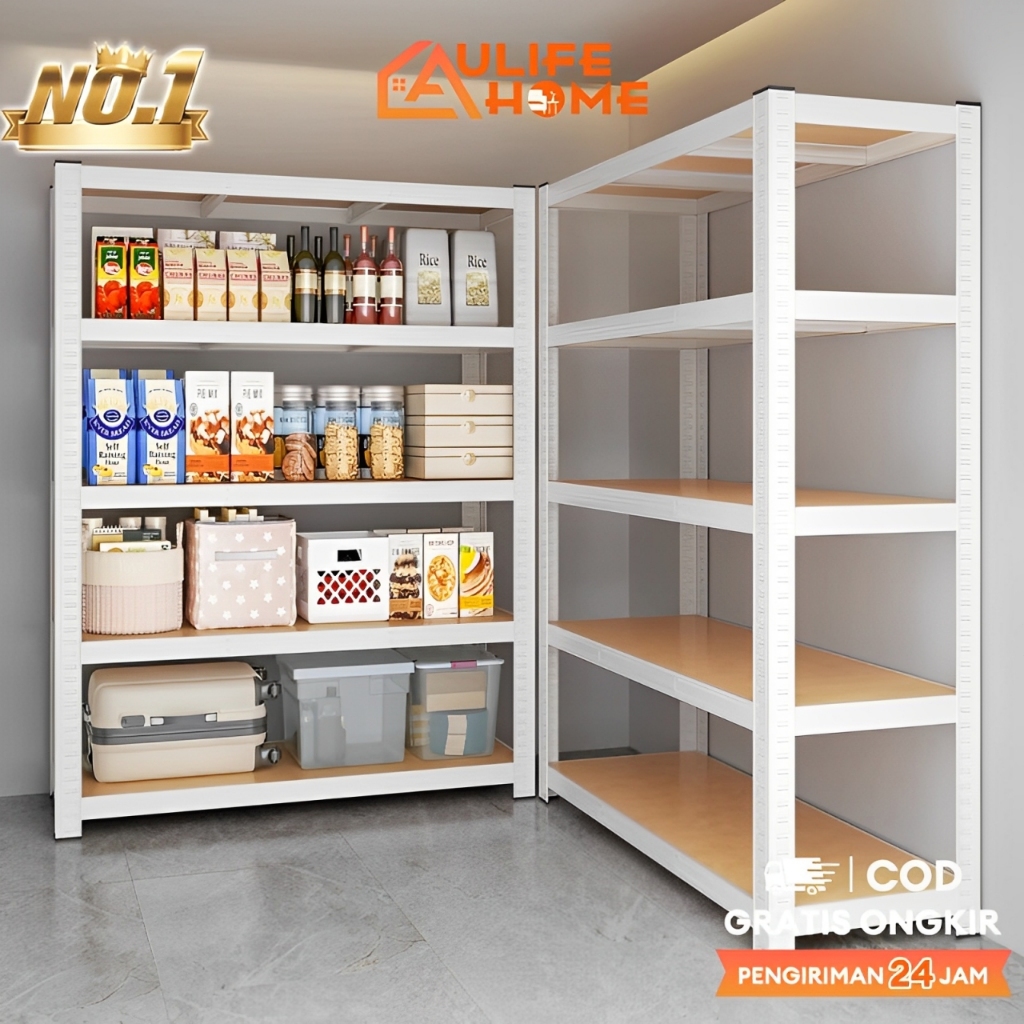 Rak 5 Susun Serbaguna Rak Besi Siku Rak Dapur Murah Rak Gudang penyimpanan yang dapat disesuaikan