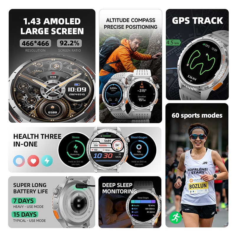 jam tangan pria skmei original Smartwatch B77 Built-in GPS 3 ATM jam tangan cowok tahan air Waterproof 1.43AMOLED Screen