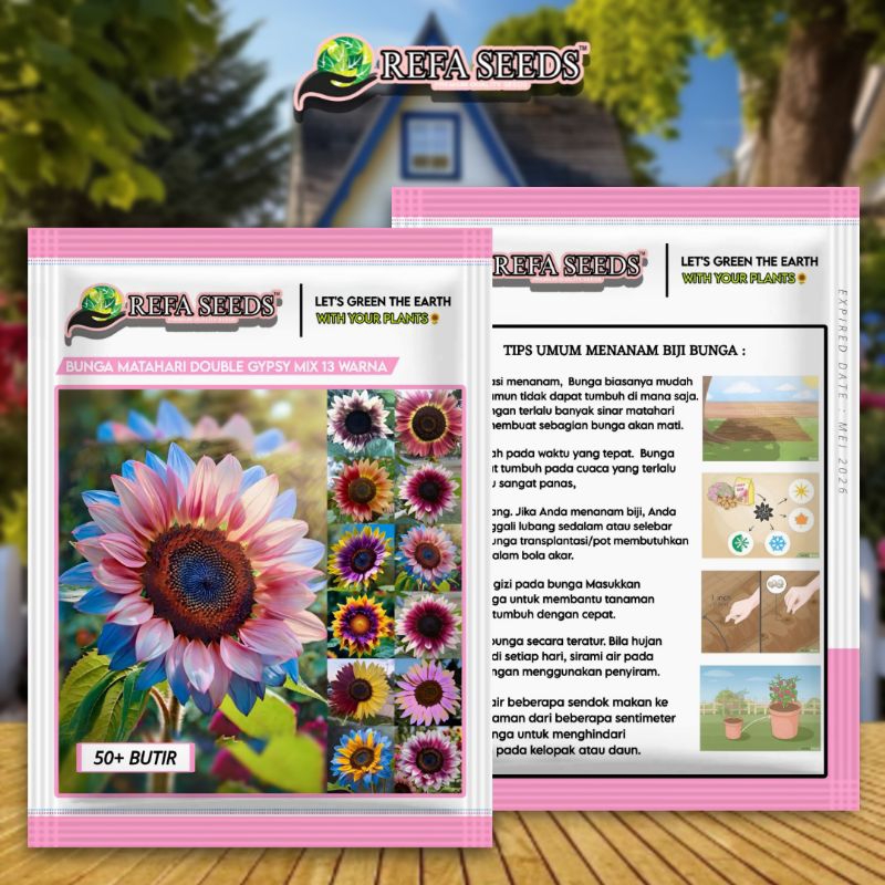 1 Pak 50 Biji Benih Bunga Matahari Double Gypsy Mix 13 Warna Original 100% / Bibit Bunga matahari