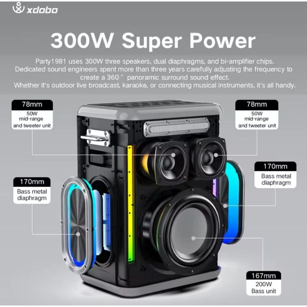 (bisa kirim instant) speaker xdobo party 1981 300wat speaker karaoke include mic wireless 2pcs