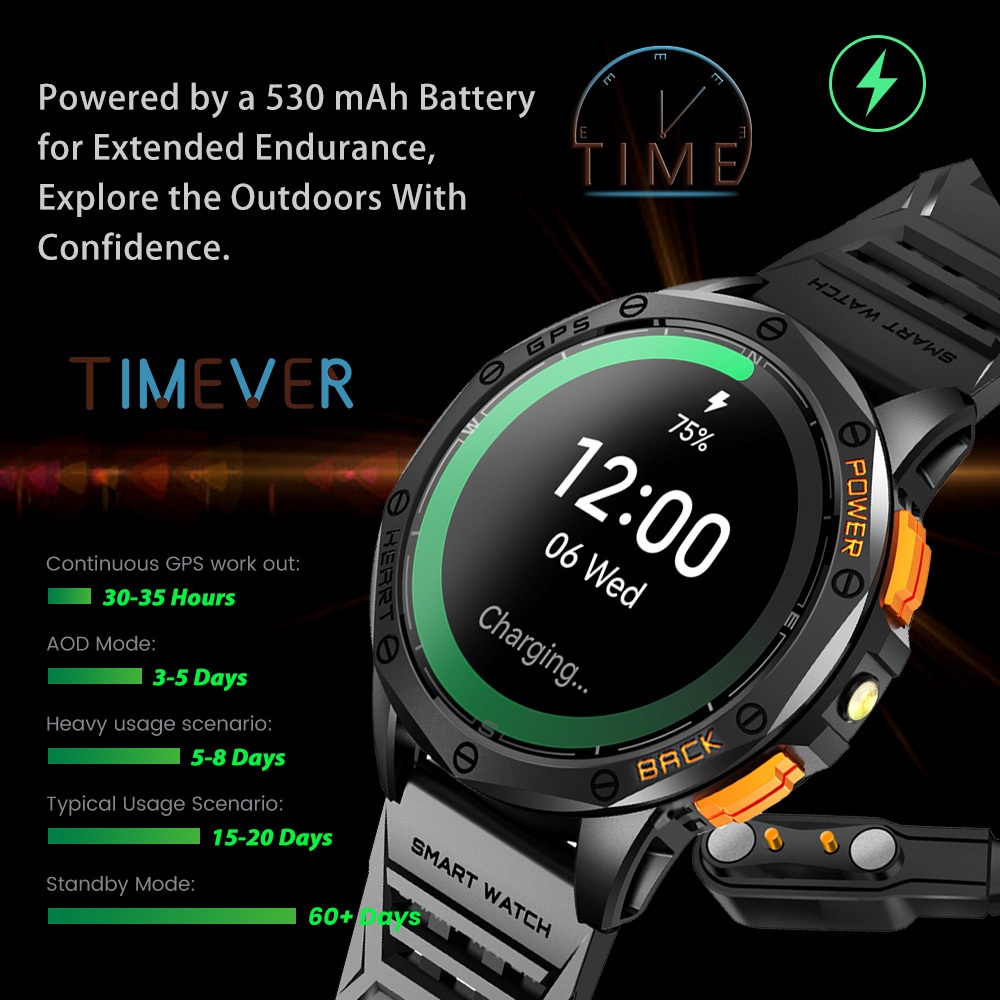 TIMEVER TR1PRO GPS Track Map AOD smartwatch lampu senter jam tangan pintar tahan air 3ATM jam tangan militer ketinggian