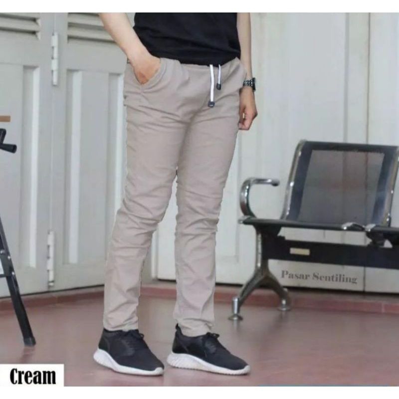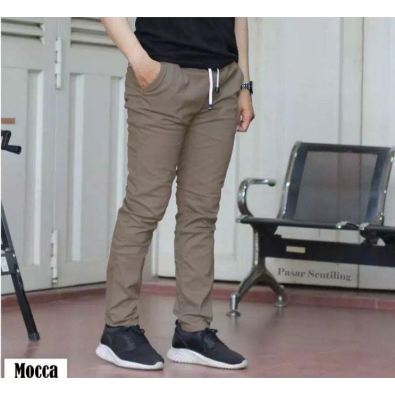 celana panjang pria pinggang karet Terbaru bahan katun