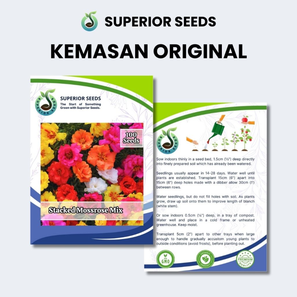 Biji Benih Bunga Mossrose Tumpuk | Double Mix Warna | Moss Rose | Pukul 9 | Sutra Bombay