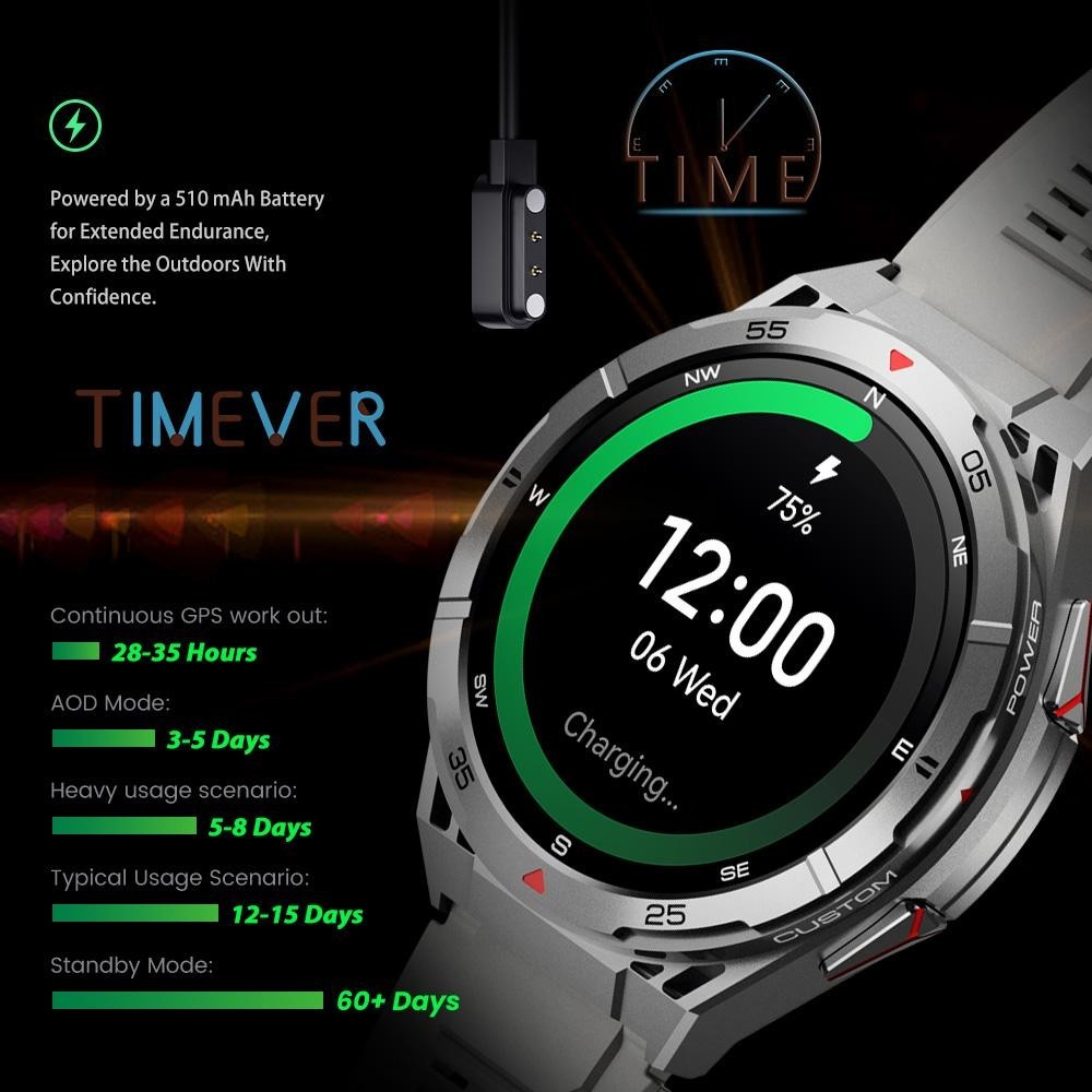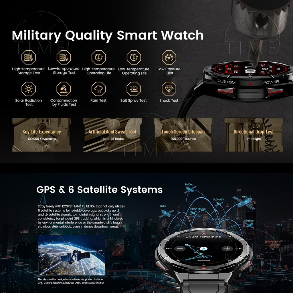 EXCLUSIVE TR2 5ATM Built-in GPS Track Map Route Back AOD jam tangan pintar Pressure Altitude Compass Military Super Smar