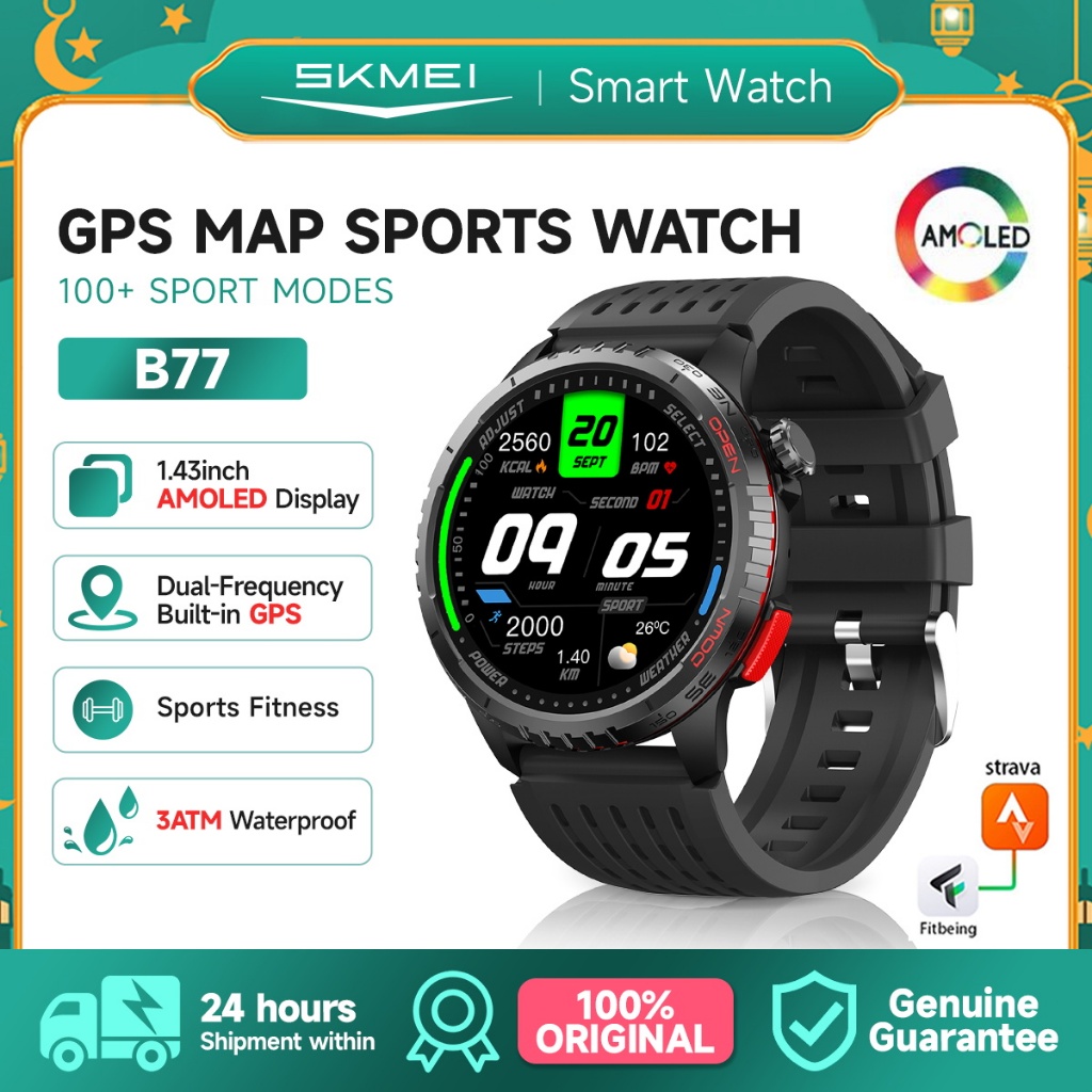 SKMEI B77 Smartwatch GPS Map Support Strava | 1.43 Amoled Touch Screen | 3ATM Waterproof |300mAh Battery Capacity | Comp