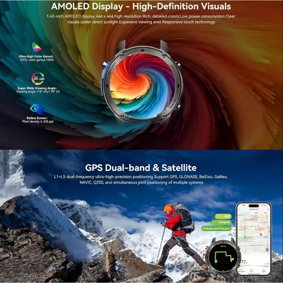 skmei dm56 gps smartwatch Map 5ATM tahan air Smartwatch AMOLED Layar Altitude Air Pressure 170+ Mode Olahraga jam tanga