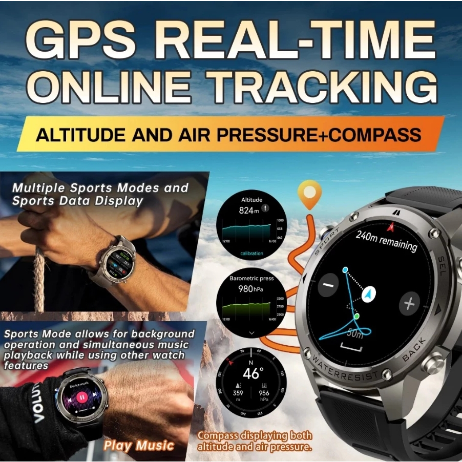 skmei dm56 gps smartwatch Map 5ATM tahan air Smartwatch AMOLED Layar Altitude Air Pressure 170+ Mode Olahraga jam tanga