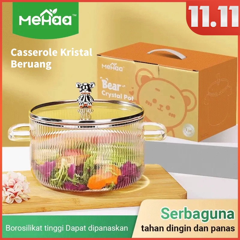 Panci Soup Rebus Mehaa Kaca Tebal Glass Cooking Pot Transparan Kristal Beruang