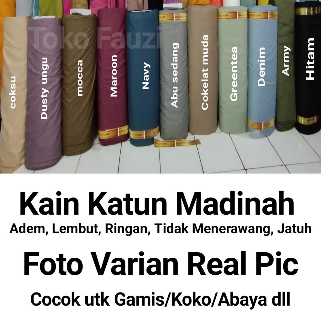 Hitam, Hijau Botol, Hijau Olive, Putih, Mocca, Coklat Tanah, Abu Sedang, Maroon, Kunyit Soft, Coksu, Dustypink, Hijau Army, Green Tea, Denim, Cokelat Muda, Navy/Dongker, Info Warna Dichat, Dusty ungu
