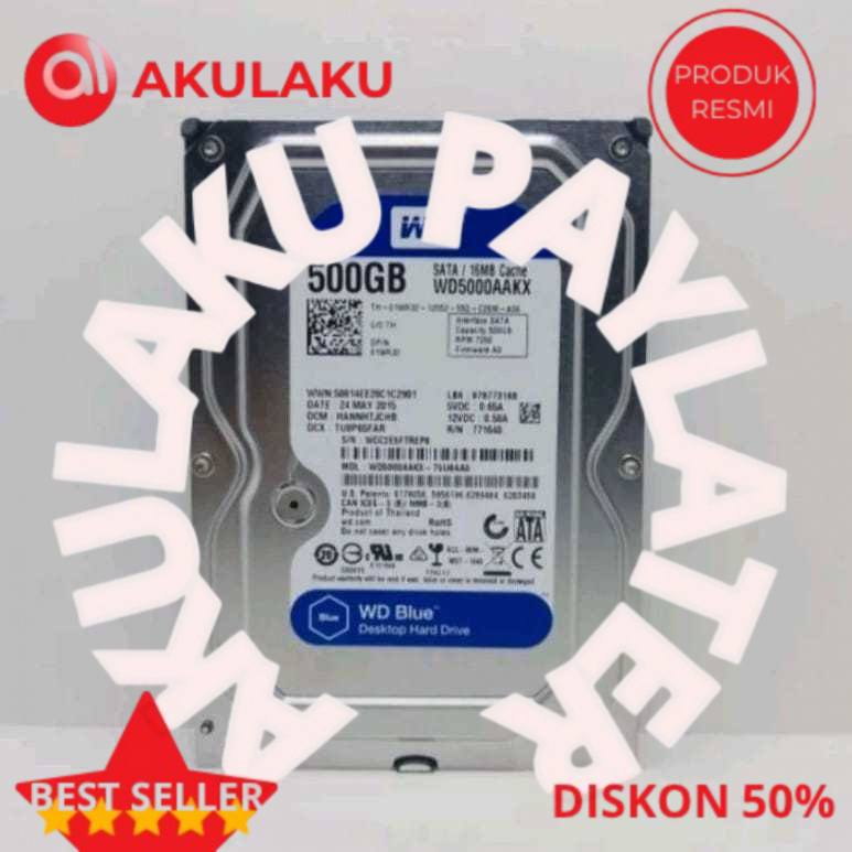 Hardisk 1TB / 500GB WD Blue Sata 3,5" - HDD 1TB/500GB PC CPU Baru 0 Days HDD