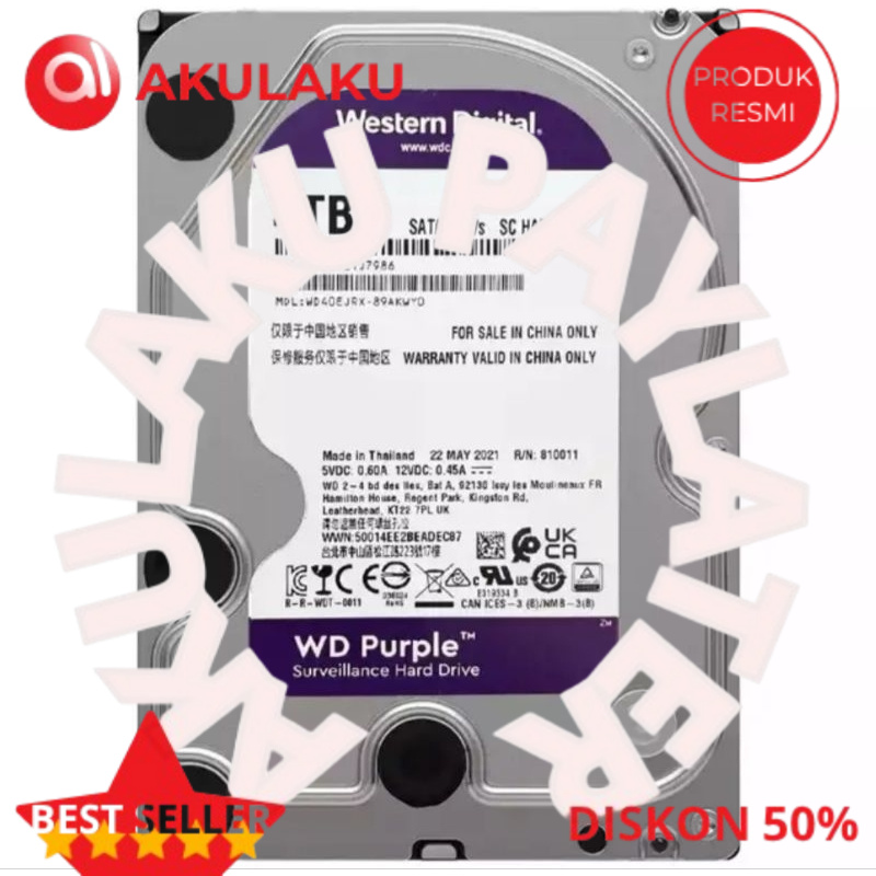 HARDISK 1TB/1.5TB/2TB/3TB/4TB/6TB WD PURPLE Sata 3,5" -Hardisk Internal Cctv Promo Harga Best Seller