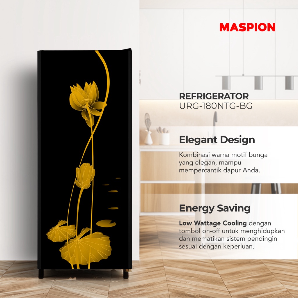 KULKAS MASPION 1 PINTU TERBARU URG-180 NTG-BG 180 LITER LEMARI REFRIGERATOR PENDINGIN TANPA BUNGA ES LOW WATT TANPA DP