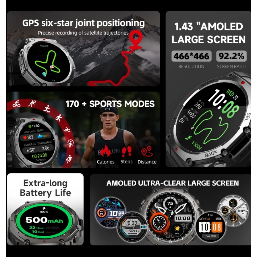 SKMEI B78 GPS Smart watch 5 ATM Waterproof/Built-in GPS/1.43AMOLED Screen 170+ Sports Modes Compass and Barometer smart