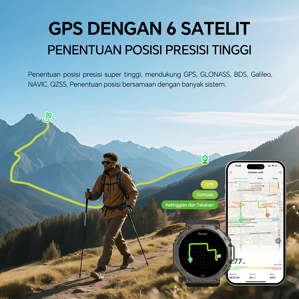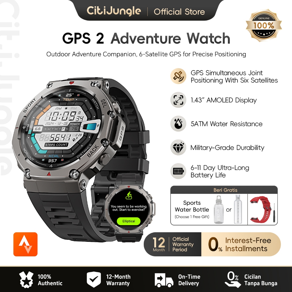 Citijungle Smartwatch GPS2 | Layar AMOLED 1.43” | GPS Tracker Multi Sistem | Tahan Air 5ATM | 170+ Mode Olahraga | Kompa
