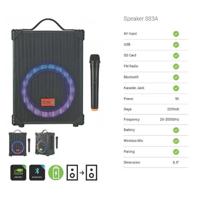 Speaker Portable Blueooth GMC 883 A 883A 6.5inch Bonus Mic Wireless Amplimeeting