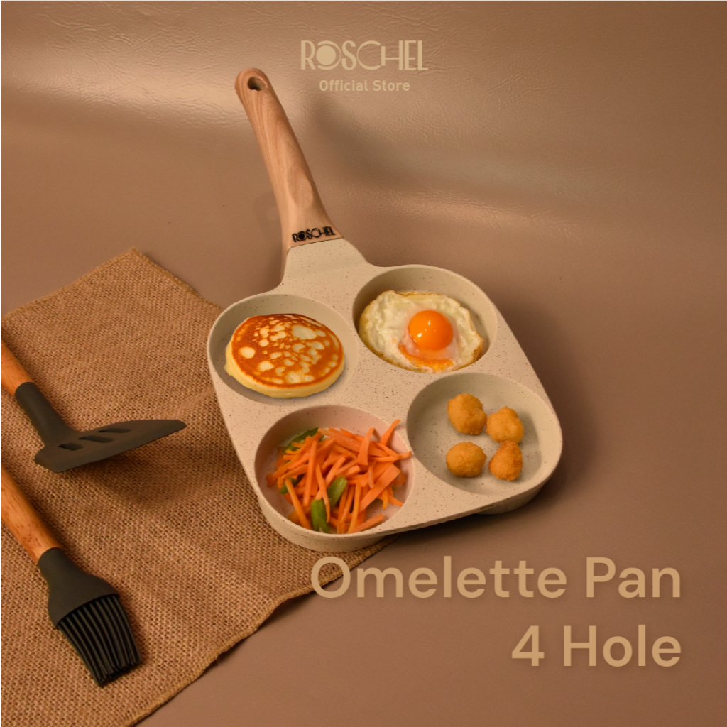 Wajan Roschel Beneta White Marble 3 Lubang Omelette Pan Anti Lengket Egg Pan