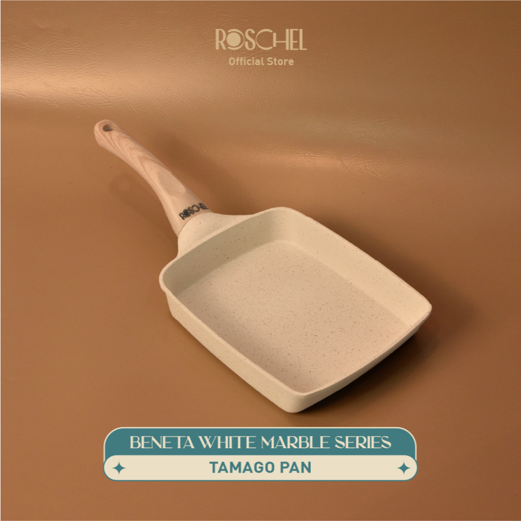 Panci Wajan Telur Roschel Beneta White Marble Coating Nonstick Tamago Pan 18 Cm Anti Lengket Omelette Pan