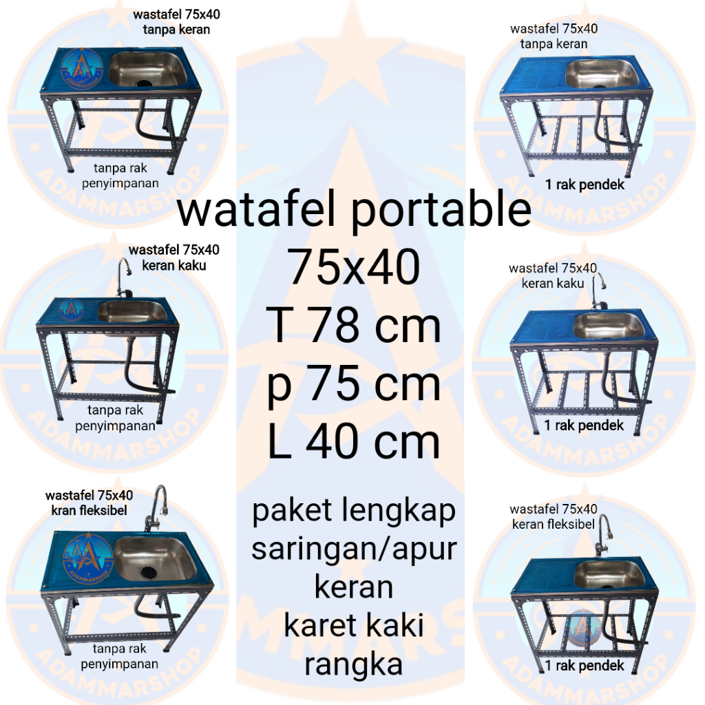 Wastafel Stainless Paket Lengkap Kitchen Sink Oki Bak Cuci Piring Portabel 75X40