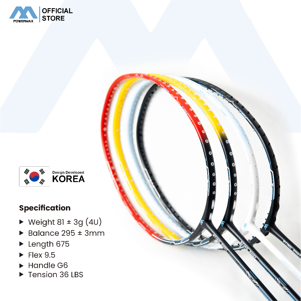 POWERMAX Raket Badminton Bulutangkis Sting Shot 36 LBS 5U Carbon Fiber Beginner Training Pemula Ringan Flex Shaft
