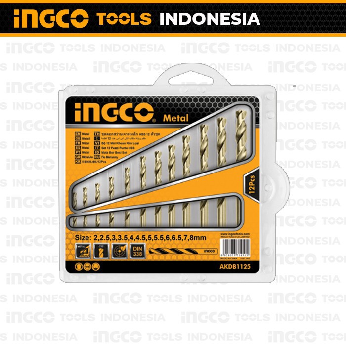 12-Pcs HSS Twist Drill Bits (2-8 mm) INGCO AKDB1125 Paket Mata Bor Besi Logam