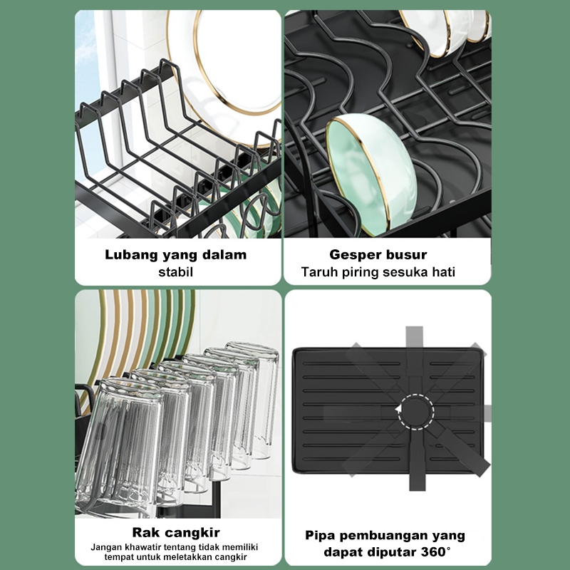 Rak Piring Dapur Stainless Steel Peniris Lipat Penyimpanan Peralatan Makan