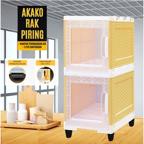 Rak Piring Akako 3 Susun 4 Susun Plastik Pintu Transparan Mini Dish Rack Lemari Dapur