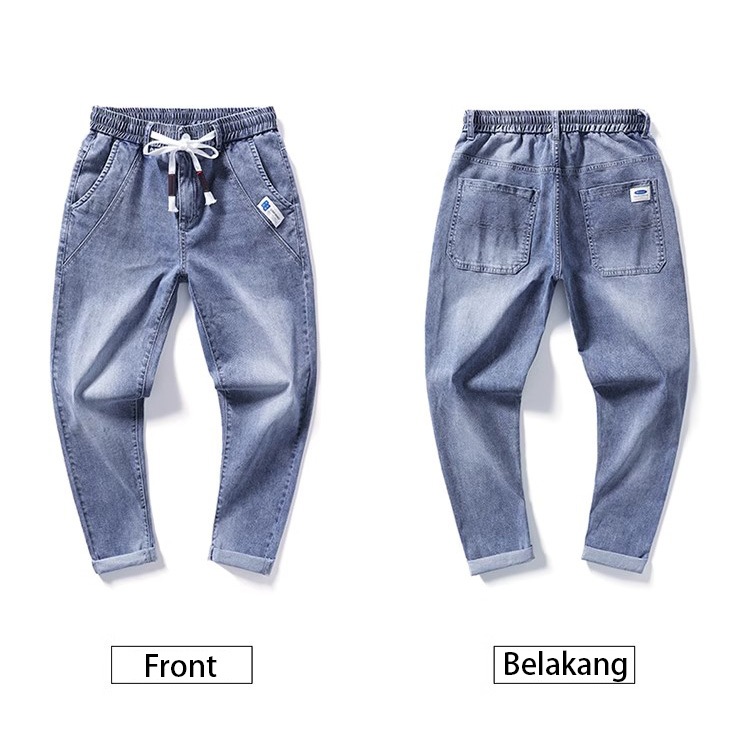 KeyBoy celana panjang pria slim fit stretch jeans celana dewasa cowok pinggang karet casual denim pants korean style