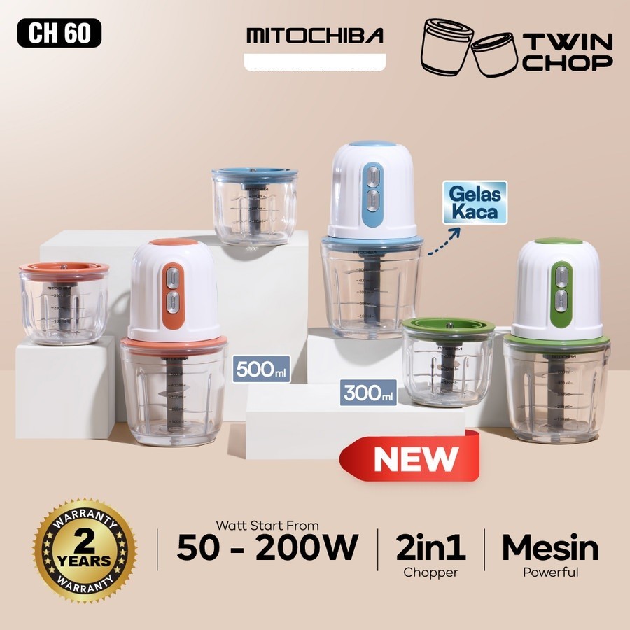 MITOCHIBA FOOD CHOPPER CH-60 MITO CH60 TWINCHOP 500ML CH 60- ALAT PENGGILING DAN PENGHALUS BUMBU ORIGINAL MITO