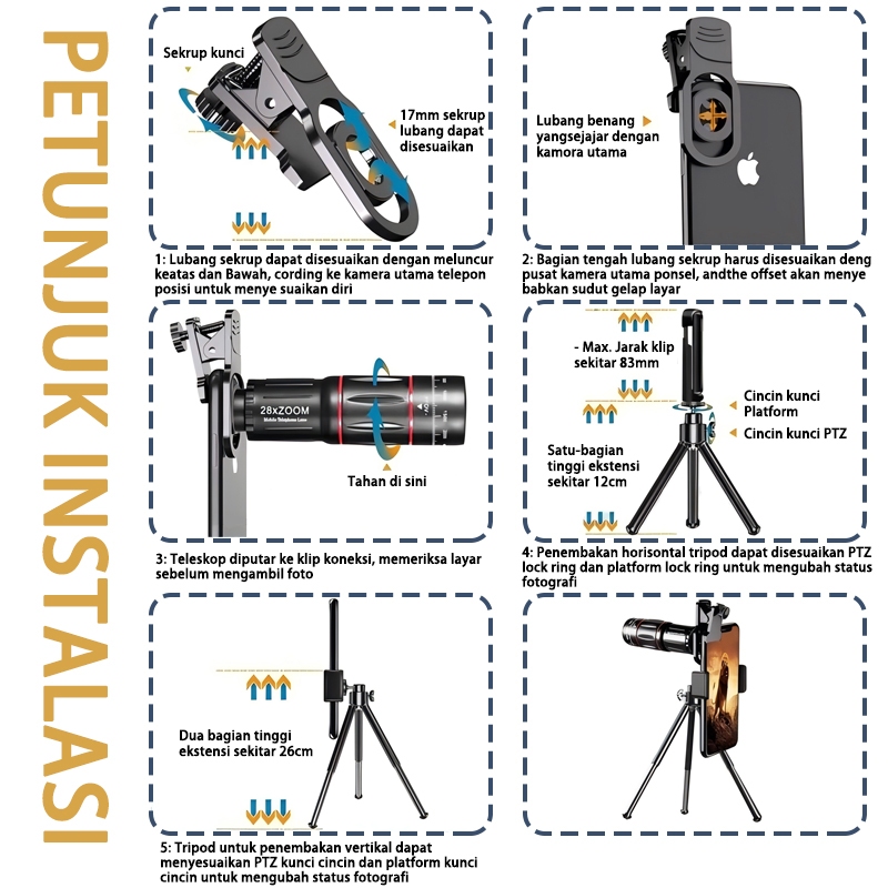 [Mall] Akona Lensa Tele Zoom HP Apexel 28X Aluminium Tripod 18-25mm Profesional Kamera Ponsel Fotografi Jelas