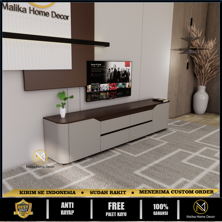 Meja Tv Minimalis Modern Lowboard Aestetik Model Round atau Lengkung Meja Tv Minimalis Modern Murah Harga Murah Promo