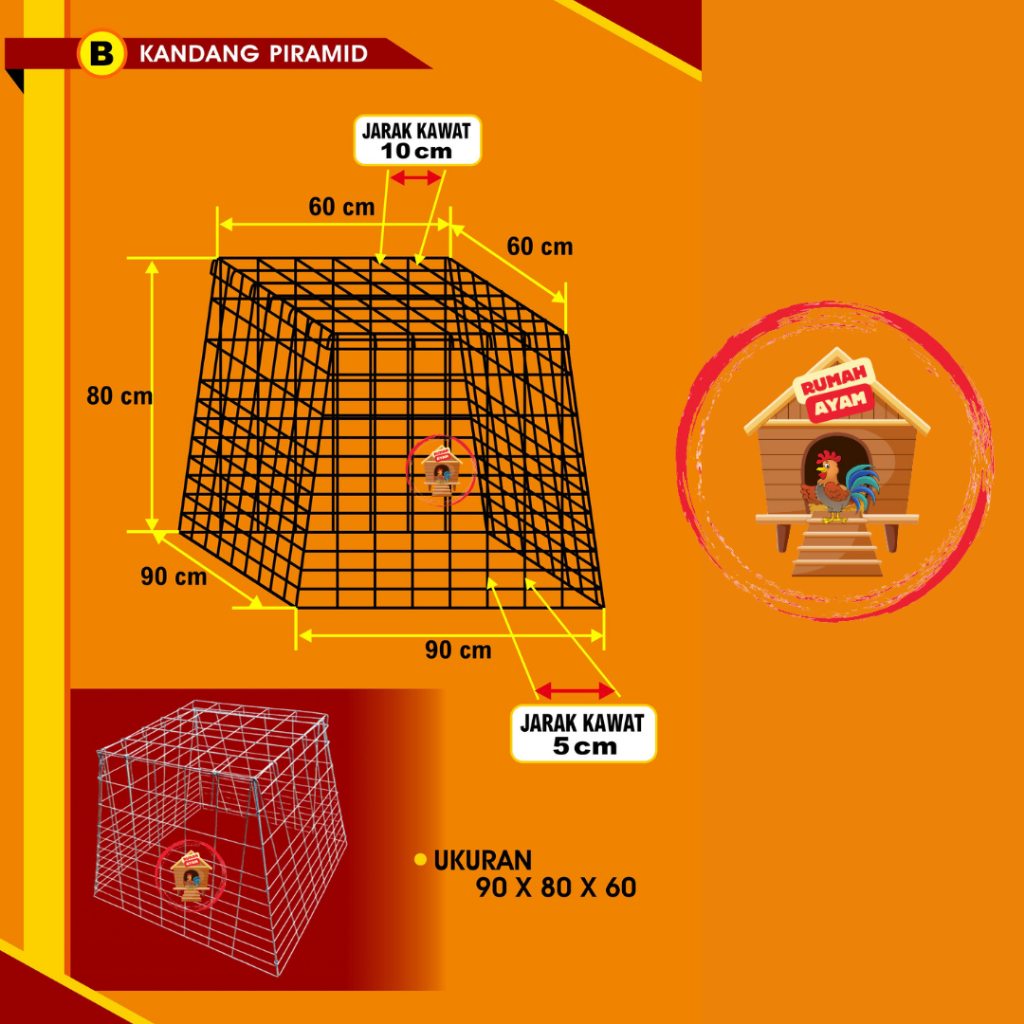 TDT - Kandang Ayam / Kurungan Ayam Bahan Galvanis Bentuk PIRAMID / TRAPESIUM