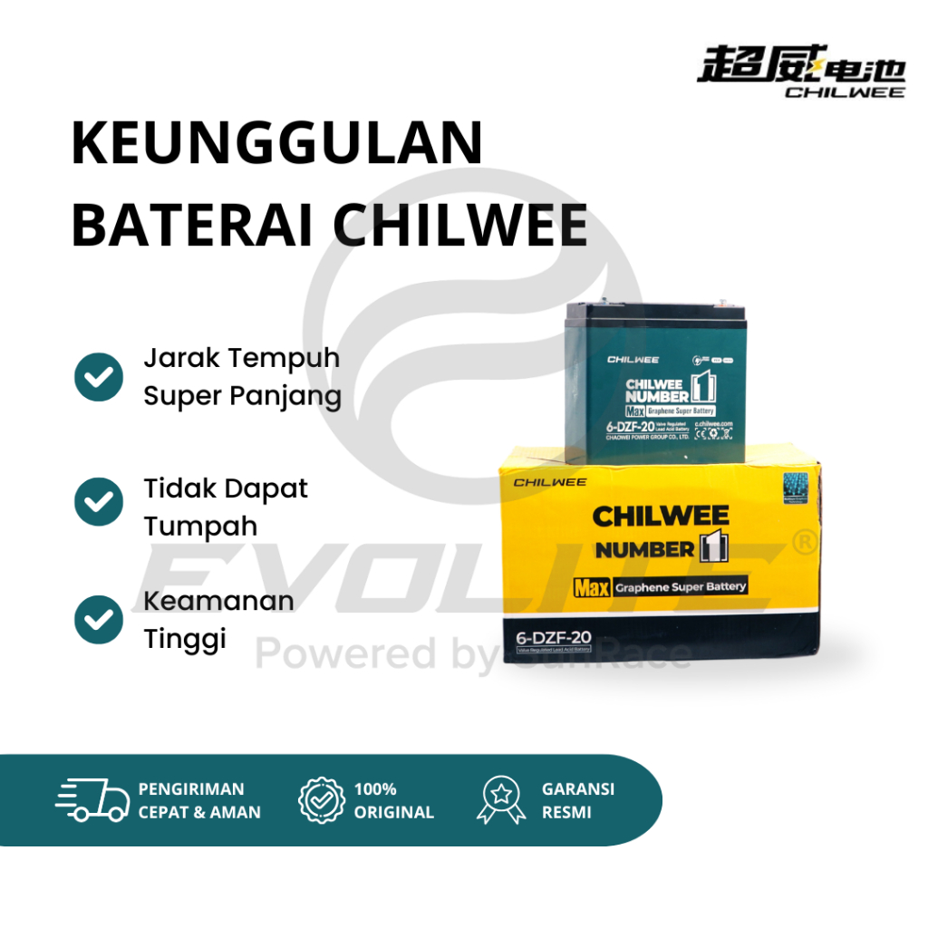 BATERAI / AKI PREMIUM GRAPHENE 12V 20AH / 25AH SEPEDA MOTOR LISTRIK CHILWEE SUNRACE