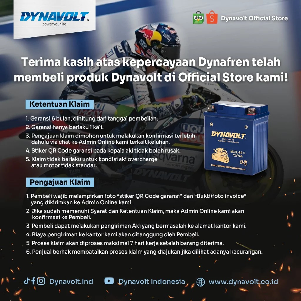 DYNAVOLT Aki Motor Yamaha Xeon, Soul GT, Mio GT, dll | Nano-Gel MG5ZS-C | 4 AH 140 CCA