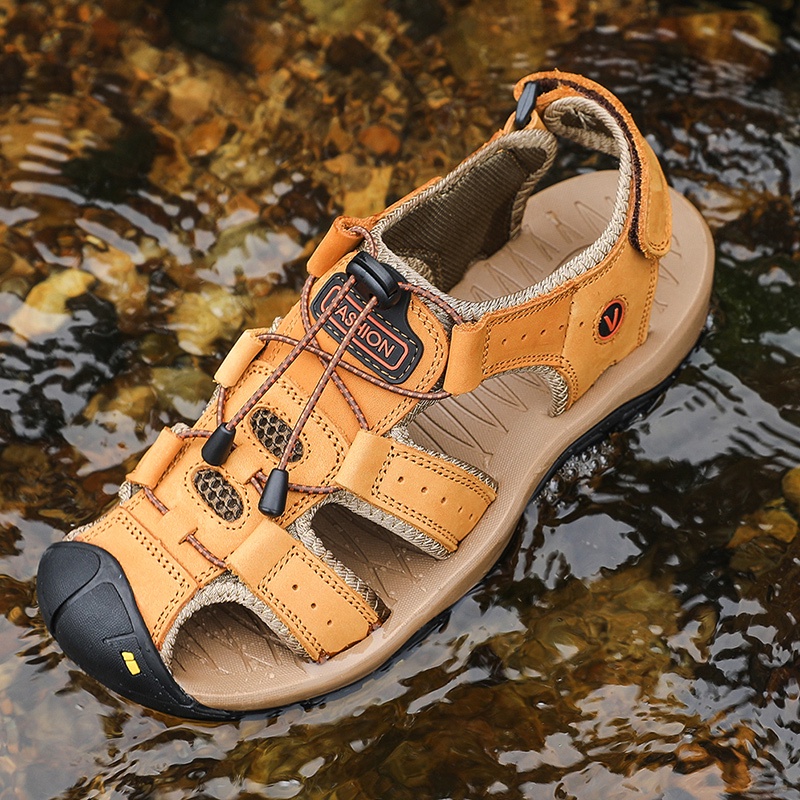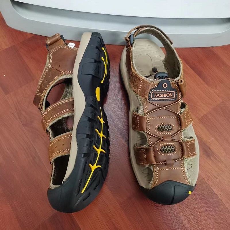 Sandal Gunung MTB Sendal Pria Gunung Hiking Touring Cowok Waterproof Kulit Asli Outdoor Tahan Air Handmade 011