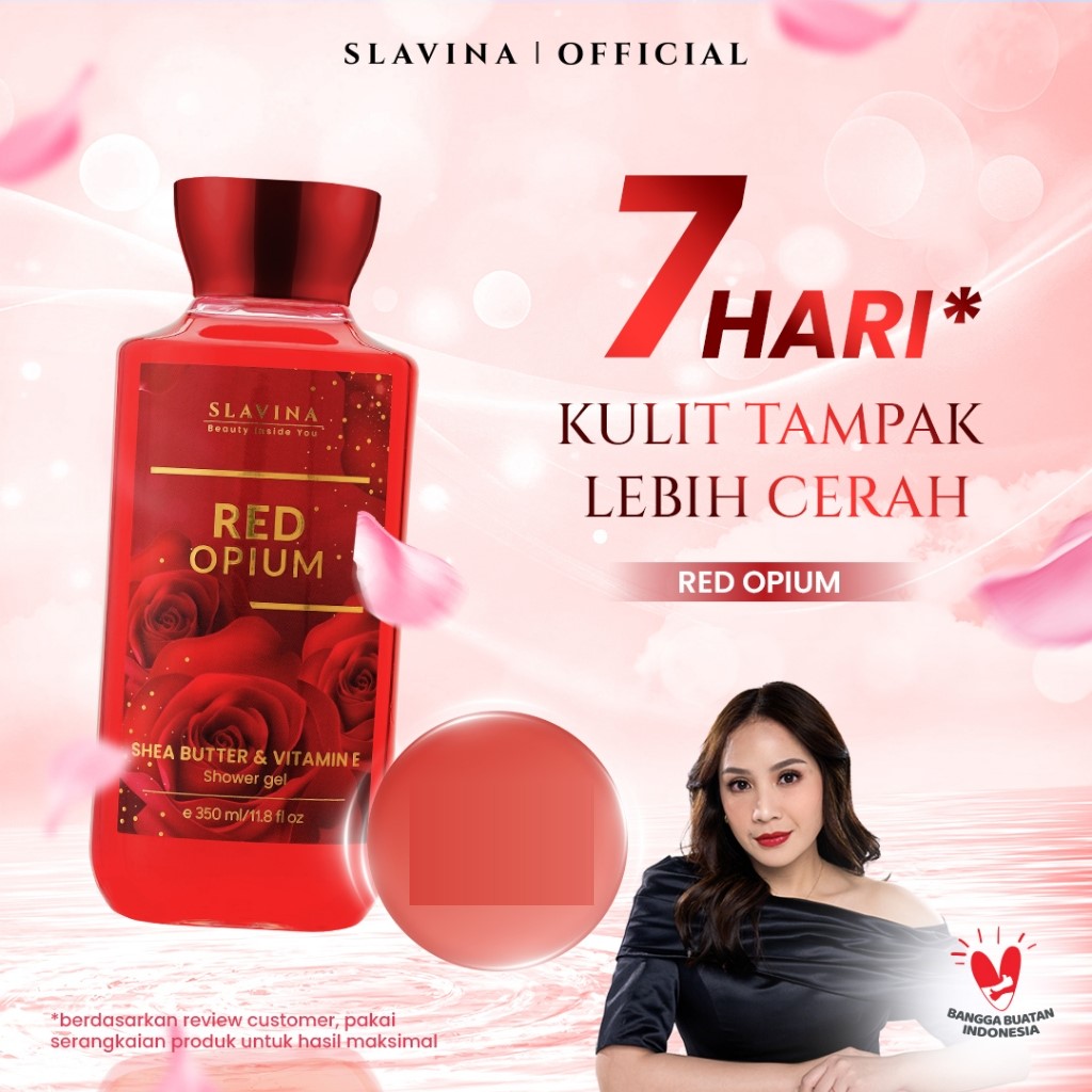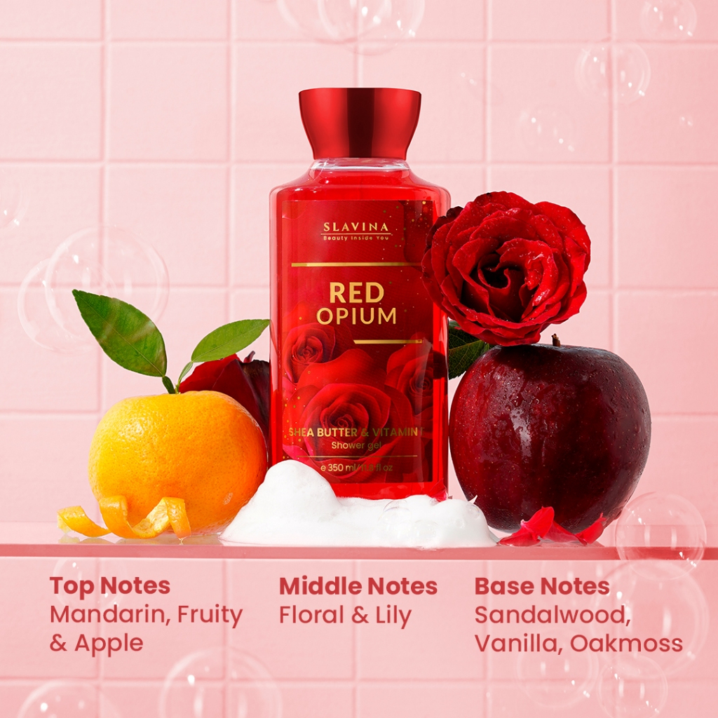 SLAVINA Sabun Cair Red Opium by Nagita Slavina Shower Gel Mandi 350ml Wangi Mawar Tahan Lama Shea Butter + Vit E