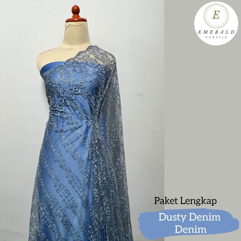 Paket Lengkap Kain Bridesmaid / Satin Velvet Super Premium Dusty Denim + Brukat Tile Denim