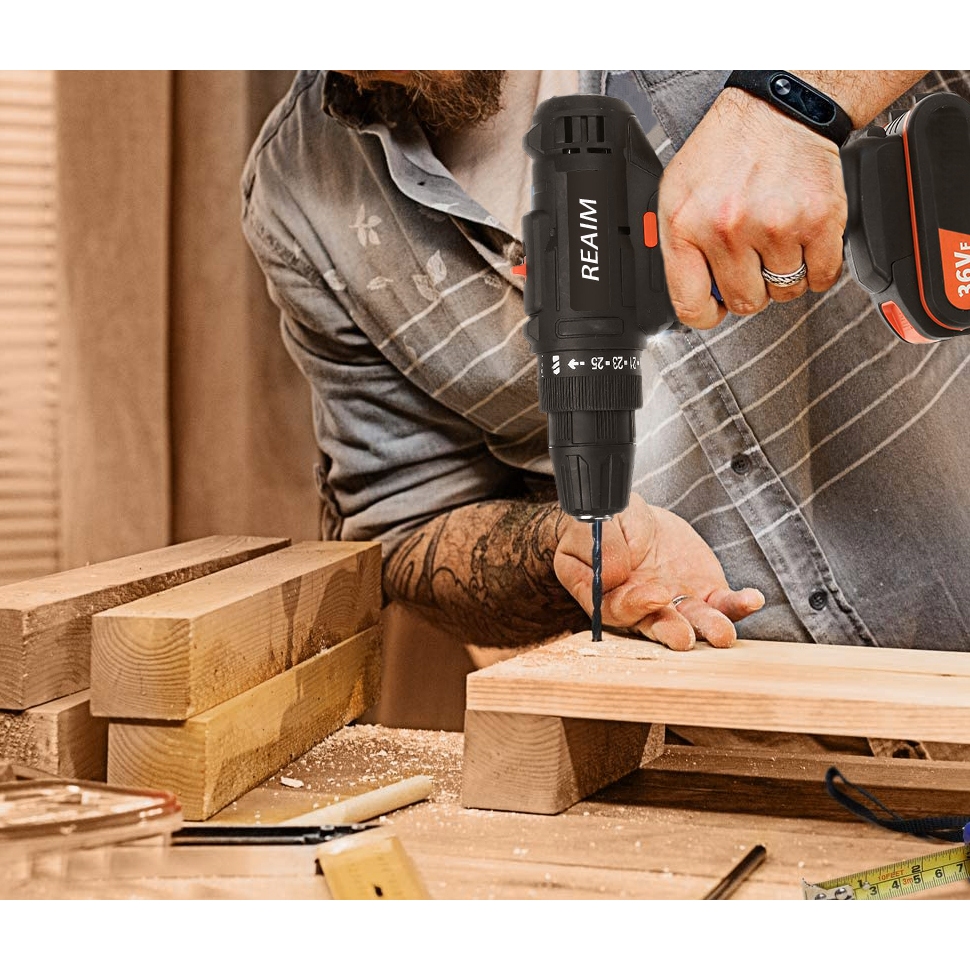REAIM Bor Baterai Bor Listrik Isi Ulang Bor Dampak Besi Bor Dampak Besi Dinding Beton Set Beton
