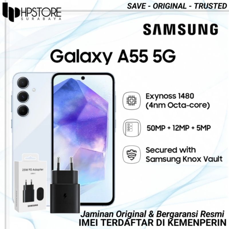 SAMSUNG GALAXY A55 5G BARU (8/256GB) (12/256GB) HP SAMSUNG A55 5G OFFICIAL TERBARU MURAH FREE ADAPTOR CHARGER TANPA DP