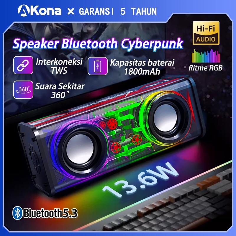 [Mall] Akona Speaker Bluetooth Cyberpunk 13.6W Daya Tinggi Bass Mantap Portable Wireless Audio Hi-Fi Musik Outdoor