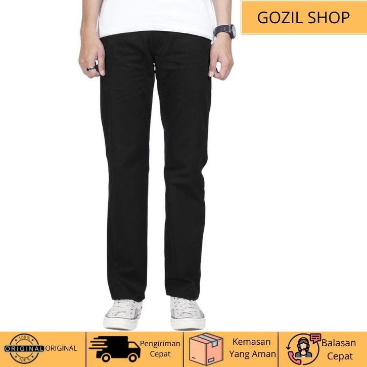 Celana Panjang Chino Celana Pria Celana Chino Pria Genova Pria Slim Straight Hitam